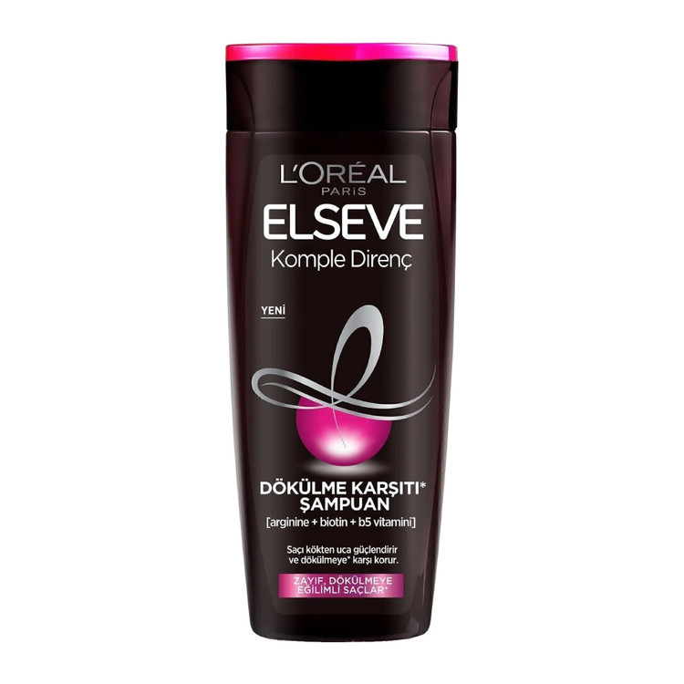 شامپو مراقبتی و ضد ریزش مو از برند معتبر L’Oréal Paris (لورآل پاریس)، بخشی از سری ELSEVE / Elvive Complete Resistance (Komple Direnc)، مخصوص موهای ضعیف، نازک و مستعد ریزش طراحی شده است تا: