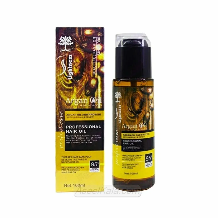 روغن آرگان Lightness یک روغن مراقبت حرفهای مو و پوست است که از بیش از ۹۵٪ روغن آرگان طبیعی به همراه پروتئین و ترکیبات تقویتی تهیه شده و برای حفظ زیبایی و سلامت موها طراحی شده است.